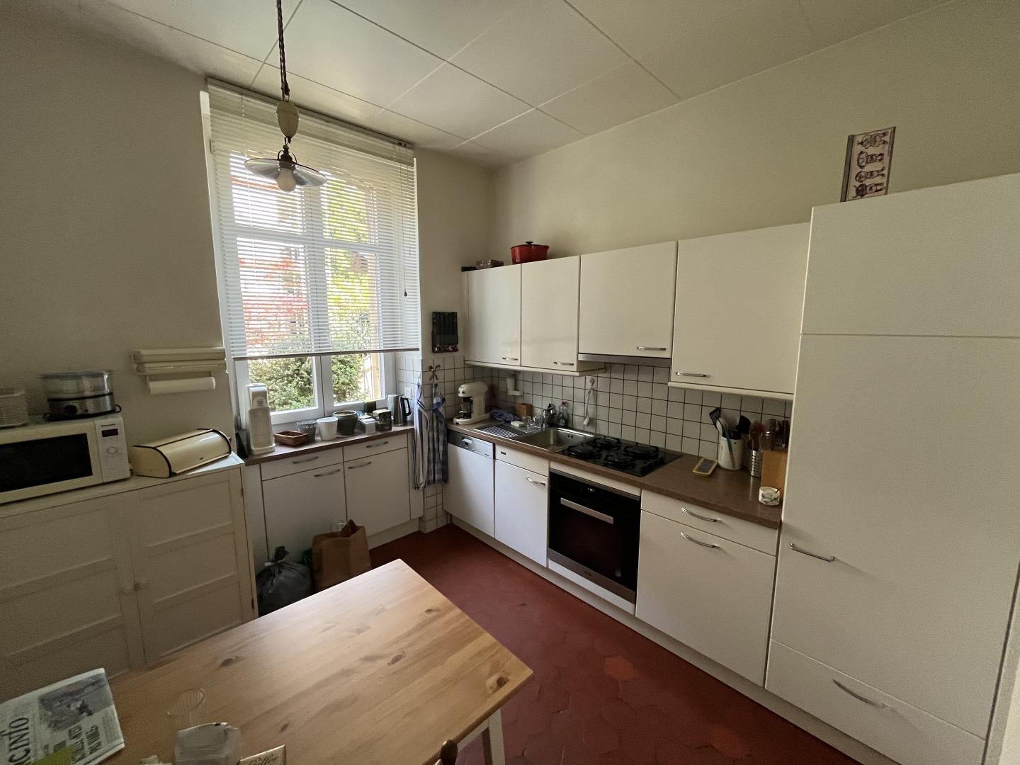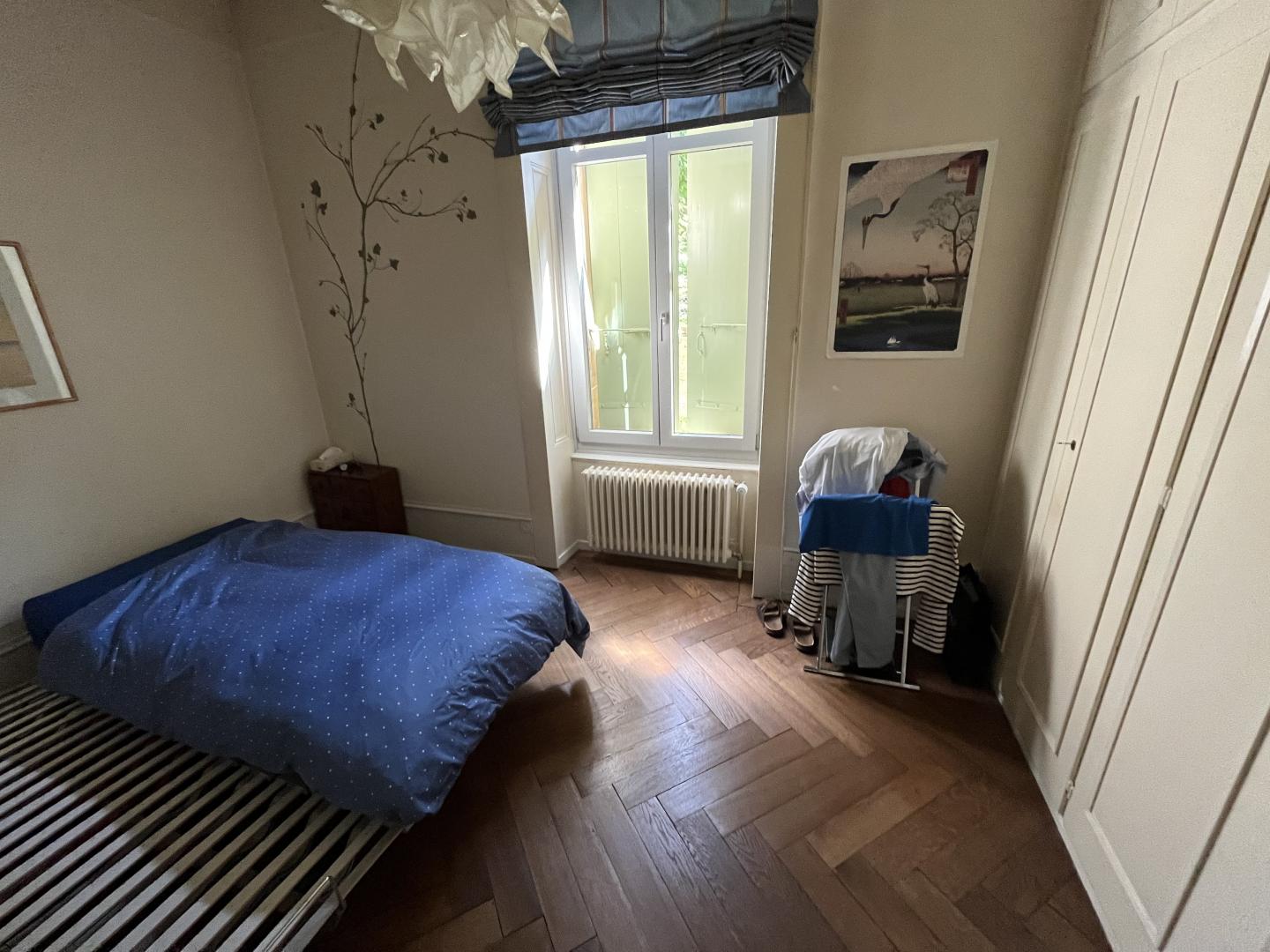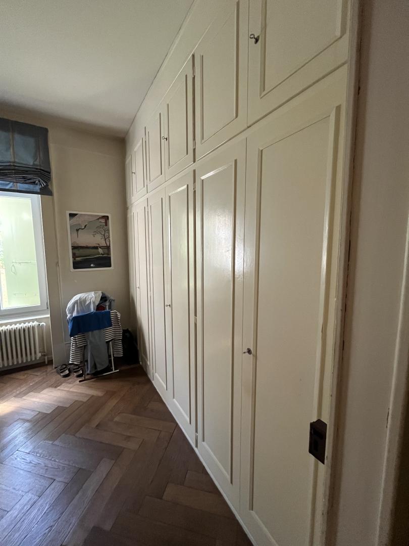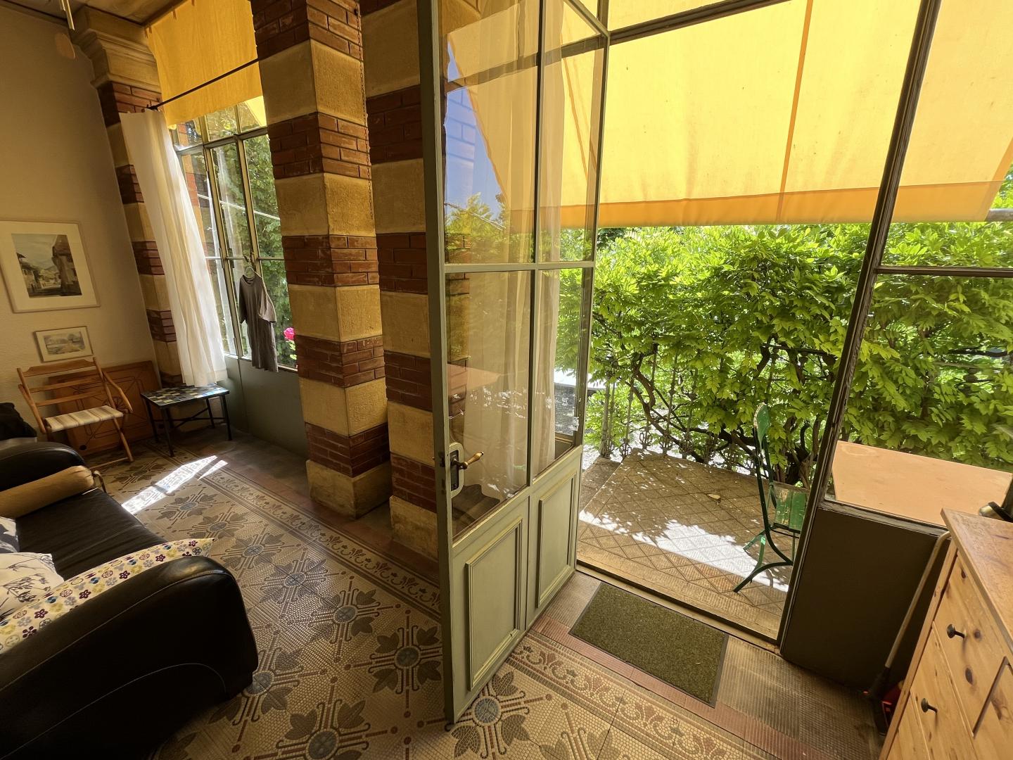 Ce magnifique appartement de plain-pied, dans une superbe maison de maître datant de la fin du XIXe siècle, se compose ainsi: un généreux hall d'entrée, deux somptueuses pièces (séjour et salle à manger) avec une hauteur incroyable et de magnifiques moulures, une cheminée d'époque et fonctionnelle, une chambre à coucher très spacieuse, une véranda orientée plein sud, une cuisine habitable, une salle de bain (WC/lavabo/baignoire) et un WC-visiteurs.