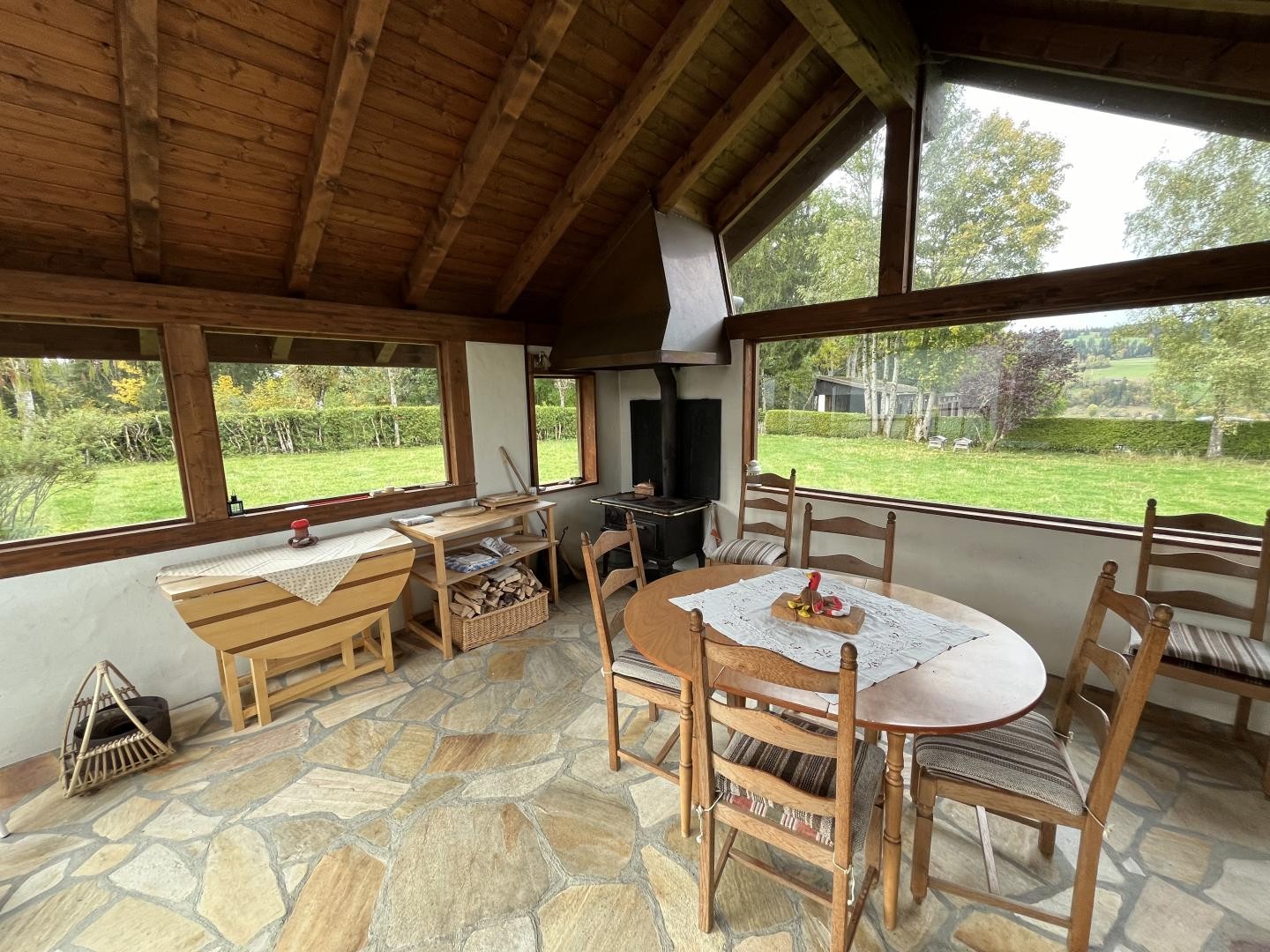 Un superbe carnotzet avec poêle, un grand poulailler, deux garages ainsi qu'un magnifique et vaste jardin viennent compléter ce bien plein de charme et de cachet.